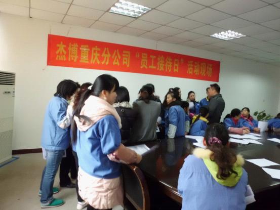 為更好的傾聽員工心聲,切實(shí)幫助員工解決工作上存在的困惑、生活上遇到的問題,本著“關(guān)心工作、關(guān)心生活、關(guān)心成長”的杰博服務(wù)文化,“為客戶服務(wù)的心,永無止境;為員工服務(wù)的心,永無止境”的服務(wù)宗旨, 致力于成為中國人力資源服務(wù)行業(yè)“員工服務(wù)效率”和“員工滿意度”最高的人力資源服務(wù)機(jī)構(gòu)的服務(wù)目標(biāo),2011年12月23日我司聯(lián)合客戶單位舉辦了杰博重慶分公司“員工接待日”活動(dòng)。