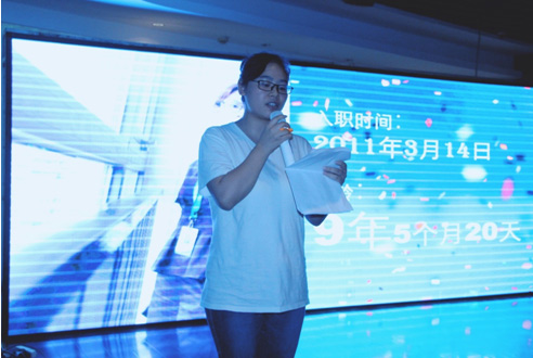 感悟環(huán)節(jié),入職一年的新員工代表米朋感嘆道:“同事們工作上比較好的方法互相分享,相互學(xué)習(xí),共同進步。公司經(jīng)常組織大家交流,同事之間的感情越加深厚,每逢佳節(jié)公司也會給員工及員工家里的父母送上節(jié)日祝福和節(jié)日禮品。以及去年年會時,悄悄錄制員工家人視頻,讓人感覺很溫馨體貼,讓我感到來到杰博是我的幸運!”