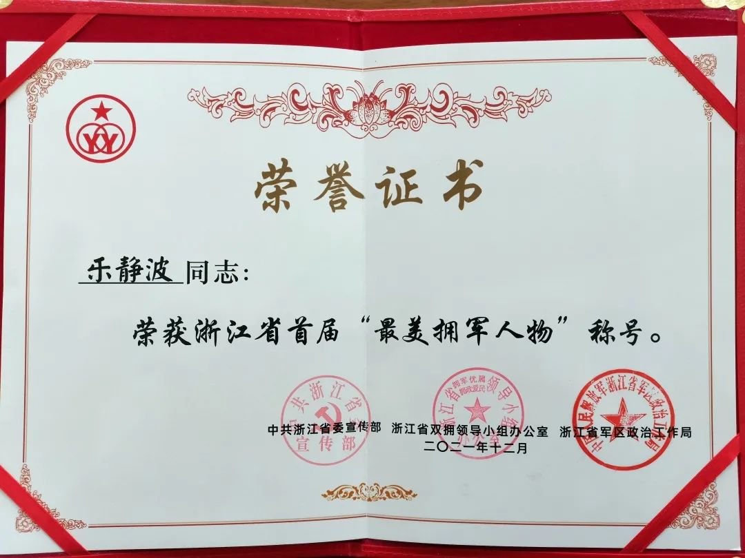 杰博股份旗下斌霖科技董事長樂靜波女士榮獲浙江省首屆“最美擁軍人物”稱號。