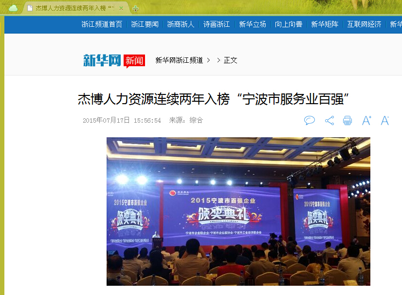 備受社會(huì)各界關(guān)注的“2015寧波百?gòu)?qiáng)榜”于7月16日發(fā)布,“寧波制造”、“寧波服務(wù)”、 “寧波競(jìng)爭(zhēng)力”等再次引起社會(huì)各界的廣泛關(guān)注,其中的“寧波服務(wù)”越來越受到重視,已然成為百?gòu)?qiáng)榜中的重要組成部分。以杰博人力資源等為代表的“寧波服務(wù)”更是在寧波的軟實(shí)力發(fā)展上下大力氣,以“寧波服務(wù)”服務(wù)全國(guó)乃至全球。