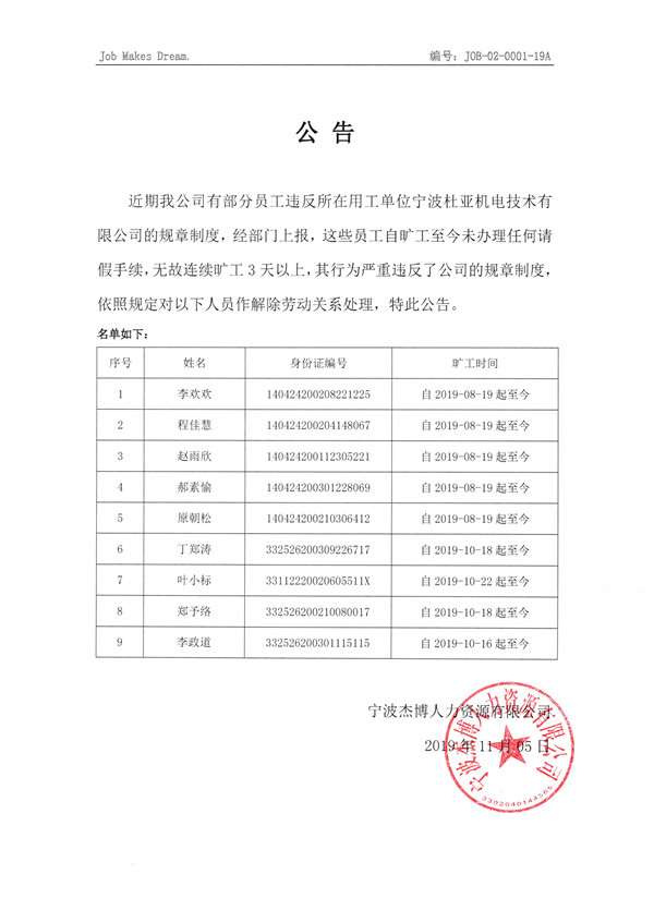 集團(tuán)動態(tài) > 黨杰博快新聞 > 公告20191106013